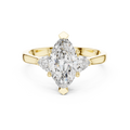A marquise‑cut center lab grown diamond with pear‑shaped side stones on a polished white‑gold band. Slender prongs lift the stones for extra light and sparkle. Elegant, balanced, and comfortable—perfect for proposals or a refined gift with ethical shine, .