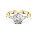 An oval lab grown diamond sits between trapezoid side stones on a polished white‑gold band. Four prongs and open sides let in extra light for strong sparkle. Clean, balanced, and comfortable—perfect for proposals or a timeless gift with ethical shine
