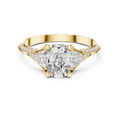 An oval lab grown diamond is framed by pear‑shaped side stones and pavé along the tapered shoulders, all in polished white gold. Open gallery brings in light; slim band keeps it comfortable. A bright, balanced three‑stone look with extra shimmer for everyday or “yes” moments.